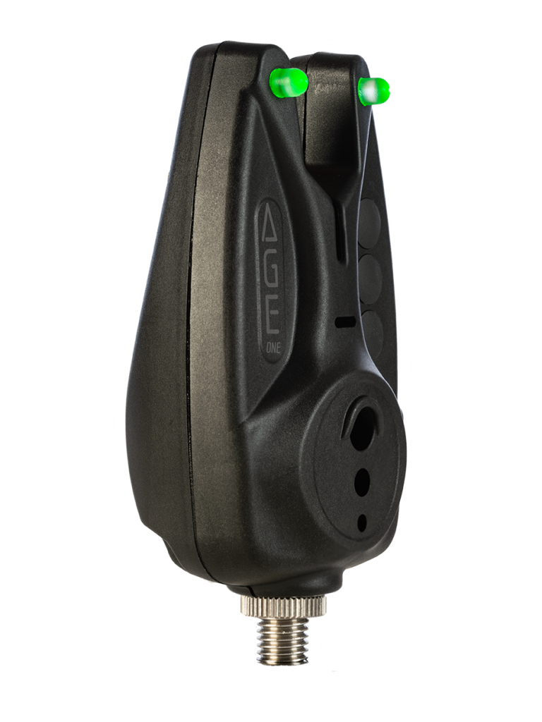 Las picaduras del indicador de picada AGEone se muestran digitalmente en el receptor CS y, por lo tanto, se le informa con precisión sobre el proceso exacto de la picada. Puede saber inmediatamente por el sonido y el LED respectivo y el color del LED en qué caña está la actividad. El sonido extremadamente fuerte puede despertar a cualquier pescador profundamente dormido. El silenciamiento le brinda la posibilidad de detectar sus picaduras de manera absolutamente silenciosa a través del LED y la alarma de vibración.