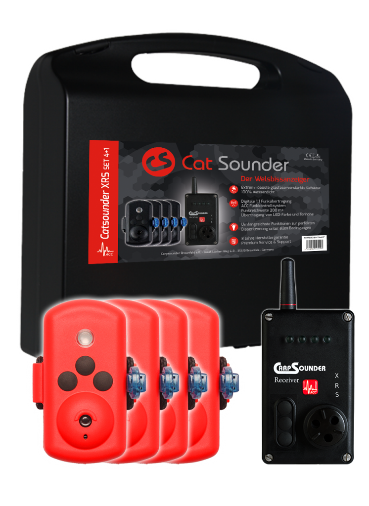 El Catsounder XRS se puede utilizar con todas las variantes de pesca en tierra y, por supuesto, también desde el barco anclado. ¡Detección de picada perfecta desarrollada por profesionales! Transmisión de radio extremadamente estable y seguimiento preciso de la mordida también en el receptor.